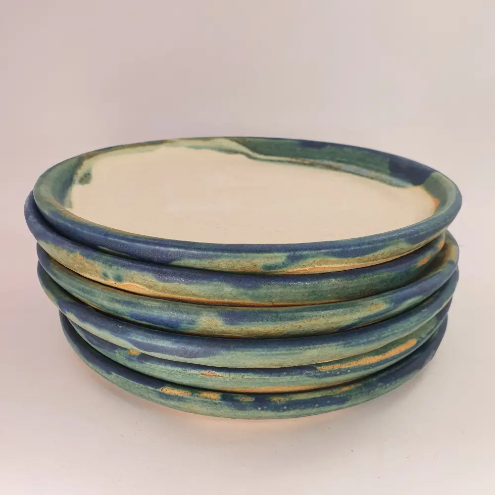 C’est un rĂ©gal que de transformer la balle d’argile en un objet utile et agrĂ©able en main. Je tourne ces assiettes Ă la main, sur mon tour de potière. Je texture parfois la surface avant l’Ă©maillage.