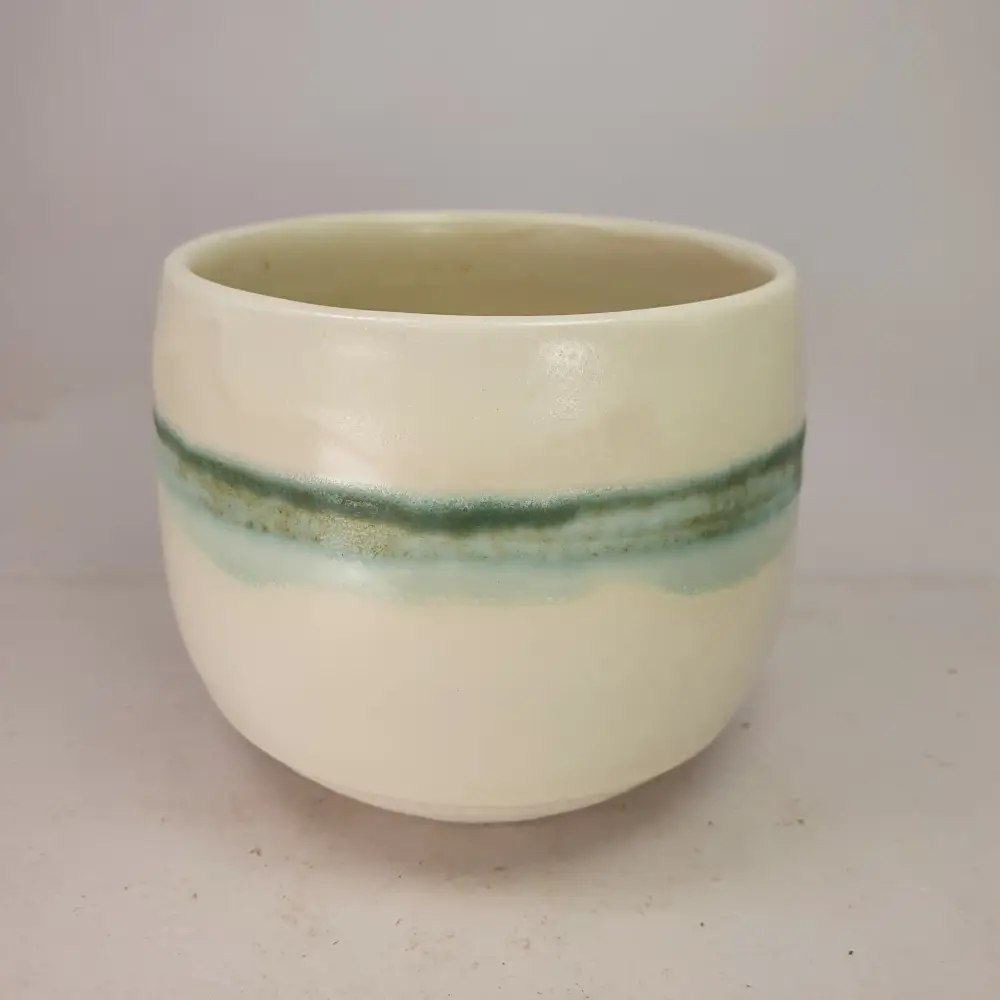 C’est un régal que de transformer la balle d’argile en un objet utile et agréable en main. Je tourne ces bols à la main, sur mon tour de potière. Je texture parfois la surface des bols avant l’émaillage.