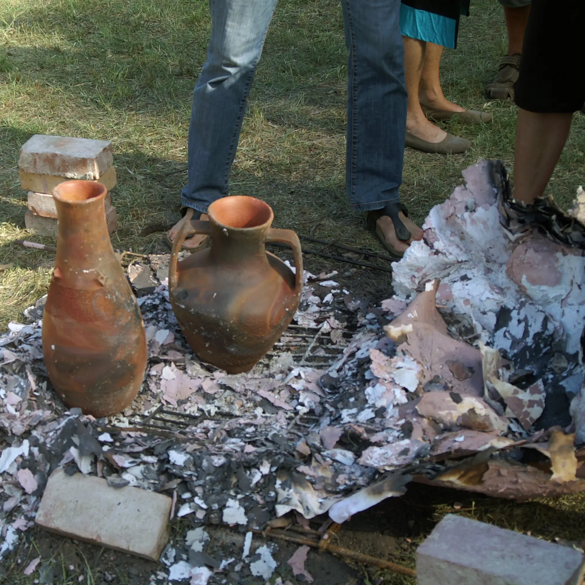 • Défournement  et découverte des pièces, souvent marquées de nuances inattendues, traces de cendres et de flammes.