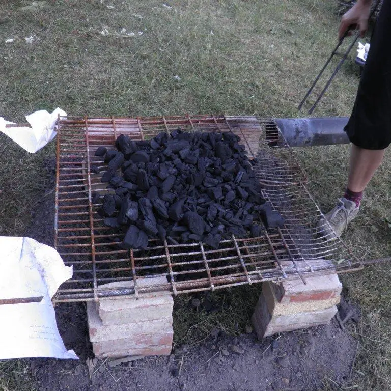 • Préparation du lit de charbon, du socle en briques et de la grille